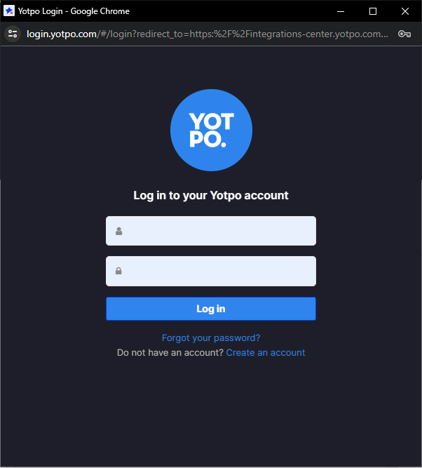 In the following pop-up window, enter your Yotpo credentials.