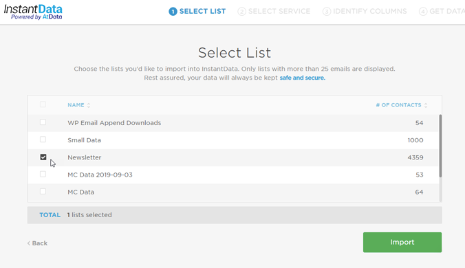 Once the data is done running, you can view the results on the List Overview page and purchase the data you need.